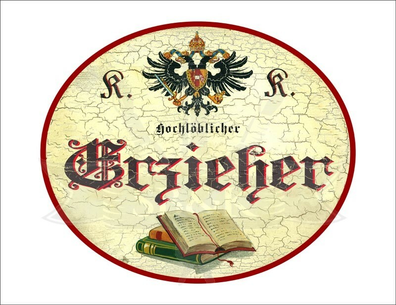 KuK Nostalgie Holzschild - Hochlöblicher Erzieher - Bücher TH
