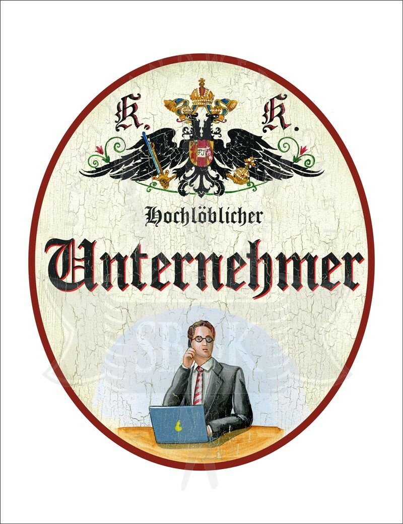 Unter dem stolzen K&K Doppeladler der Monarchie beeindruckt ein Titel wie Hochlöbliche/r, Landesbefugte/r oder kaiserlich privilegierte/r kombiniert mit Berufen, Hobbys, Sport oder anderen Passionen, und einem dazu passendem Symbol oder Bildmotiv. Auf Wunsch mit Namen, Jahreszahlen, etc. personalisiert, sind diese Schilder ideale Geschenke für die zahlreiche Anlässe: die bestandene Gesellen- oder Meisterprüfung, Diplom, Berufsjubiläen oder zum Eintritt in den wohlverdienten Ruhestand.