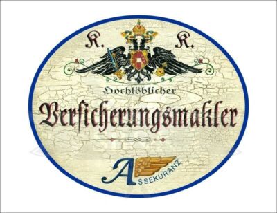 KuK Nostalgie Holzschild - Hochlöblicher Versicherungsmakler - Wappen TH