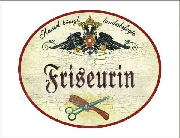 KuK Nostalgie Holzschild - Landesbefugte Friseurin - Schere Kamm TH