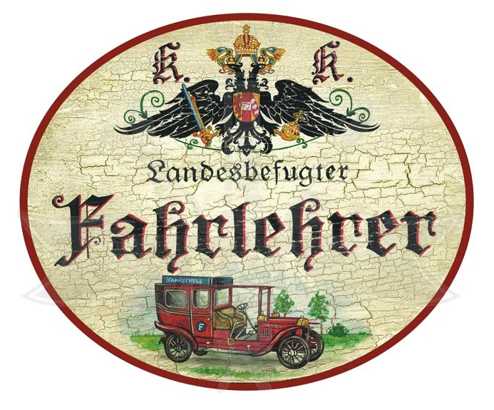 KuK Nostalgie Holzschild Landesbefugter Fahrlehrer