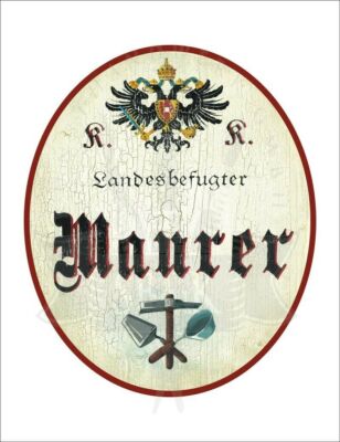 Unter dem stolzen K&K Doppeladler der Monarchie beeindruckt ein Titel wie Hochlöbliche/r, Landesbefugte/r oder kaiserlich privilegierte/r kombiniert mit Berufen, Hobbys, Sport oder anderen Passionen, und einem dazu passendem Symbol oder Bildmotiv. Auf Wunsch mit Namen, Jahreszahlen, etc. personalisiert, sind diese Schilder ideale Geschenke für die zahlreiche Anlässe: die bestandene Gesellen- oder Meisterprüfung, Diplom, Berufsjubiläen oder zum Eintritt in den wohlverdienten Ruhestand.