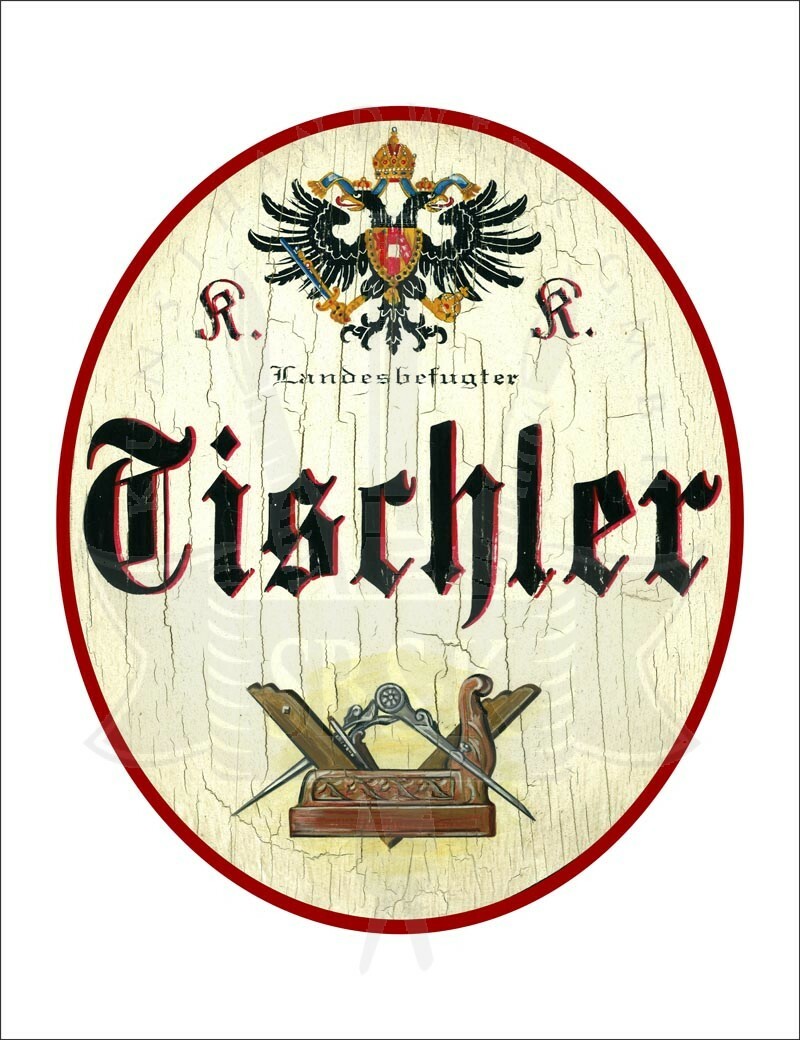 KuK Nostalgie Holzschild - Landesbefugter Tischler - Wappen Hobel TH