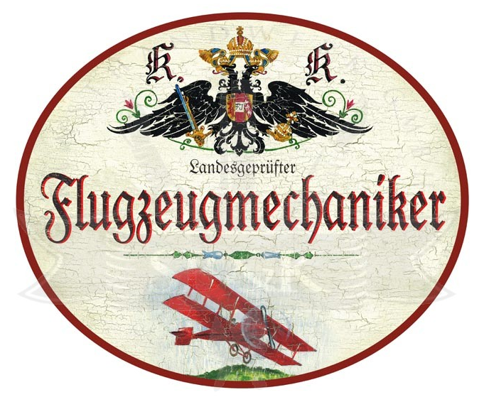 KuK Nostalgie Holzschild Landesgeprüfter Flugzeugmechaniker