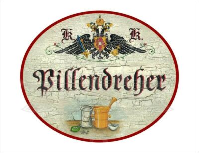 KuK Nostalgie Holzschild - Pillendreher - Mörser Tabletten TH