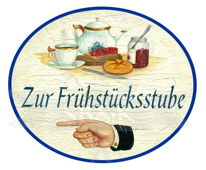 KuK Nostalgie Holzschild Zum Frühstück links