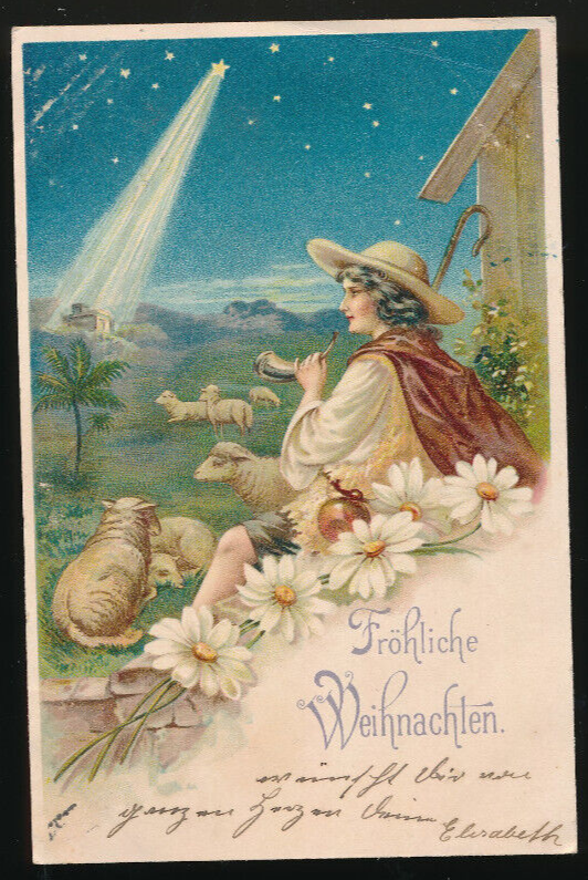 Kunst-Karte Fröhliche Weihnachten Schäfer mit Schafen (2098)