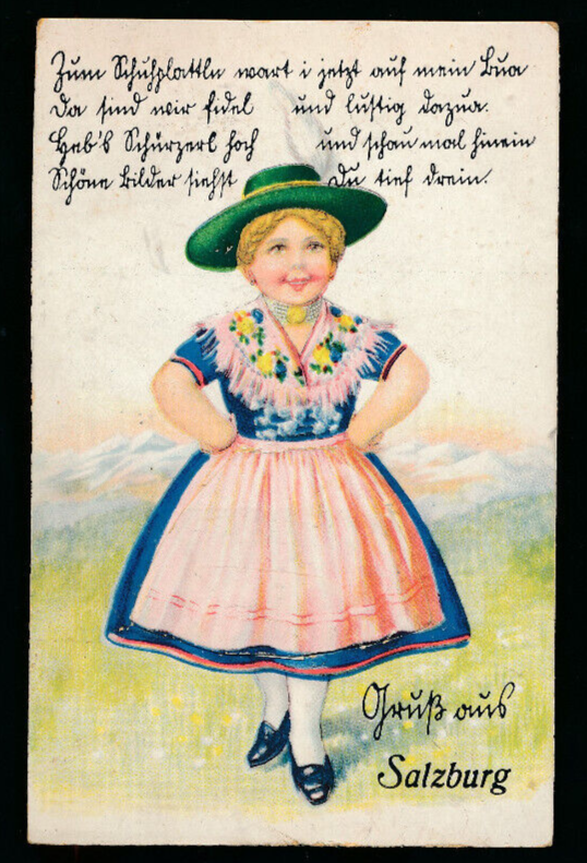 Leporello - Karte gruß aus Salzburg Mädchen in Tracht (5958)