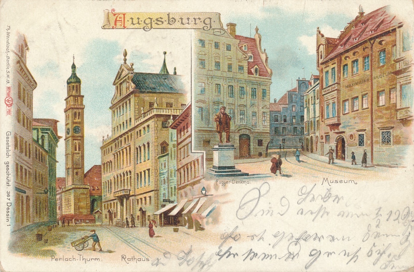 Litho - Karte gruss aus Augsburg Bayern (6607)