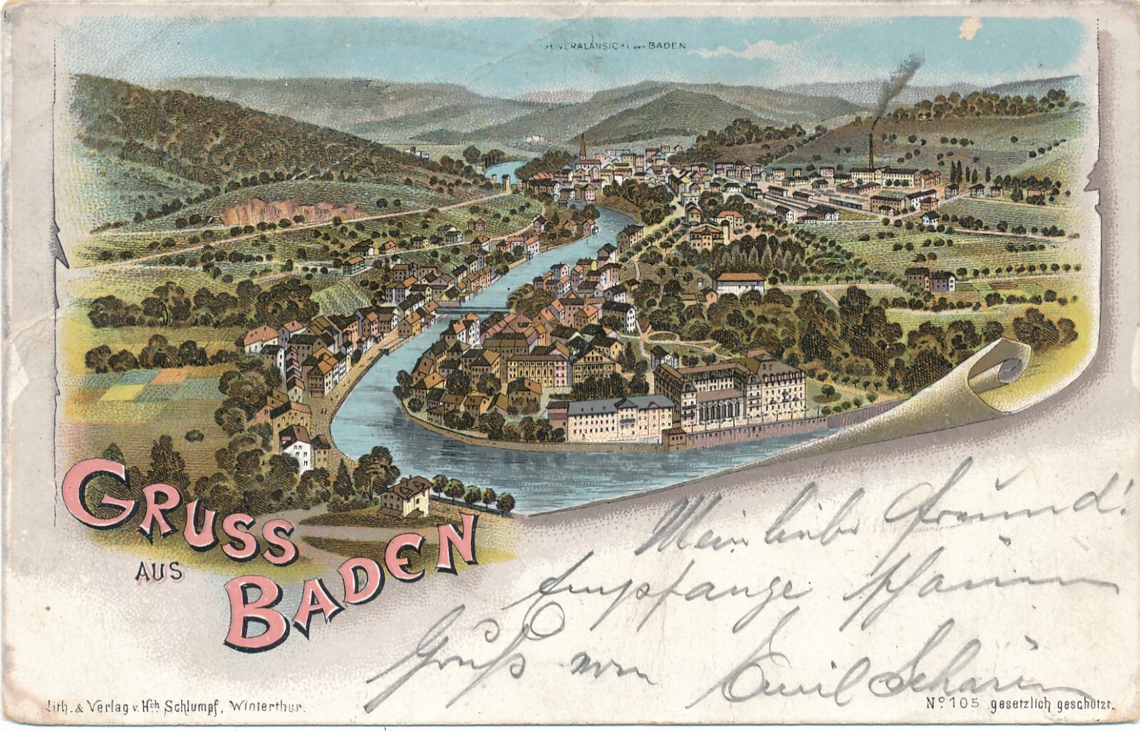 Litho - Karte gruss aus Baden Ansichtskarte (10892)