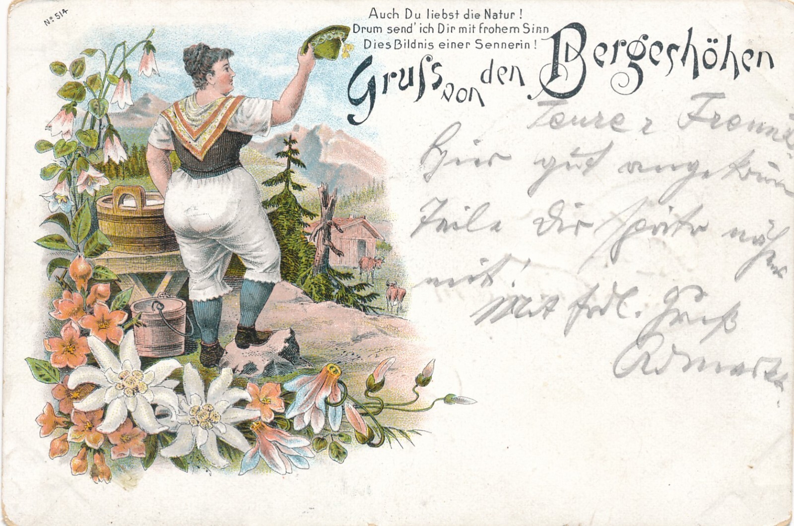Litho - Karte gruss aus den Bergeshöhen mit Kuh Ansichtskarte (8633)