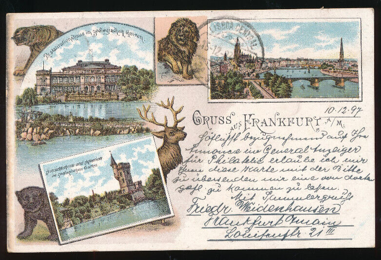 Litho-Karte gruss aus Frankfurt am Main mit Tieren Hessen (592)