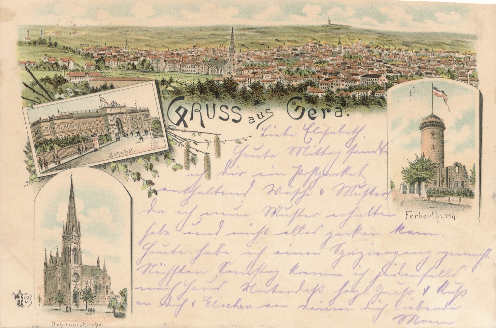 Litho-Karte, Gruss aus Gera, Thüringen (S52)