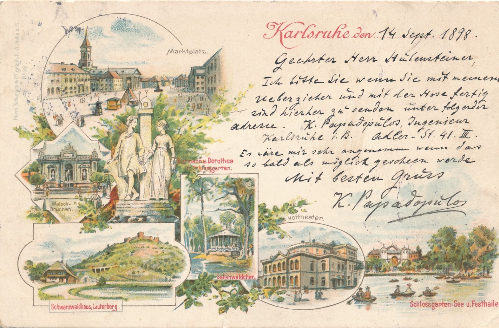 Litho - Karte gruss aus Karlsruhe Baden - Württemberg (6618)