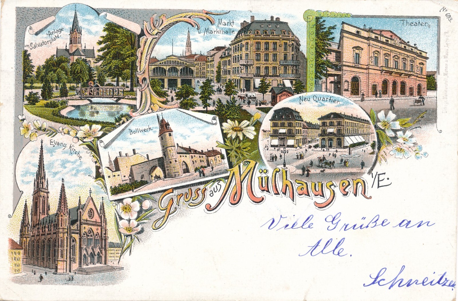 Litho - Karte gruss aus Mülhausen Thüringen Ansichtskarte (9061)