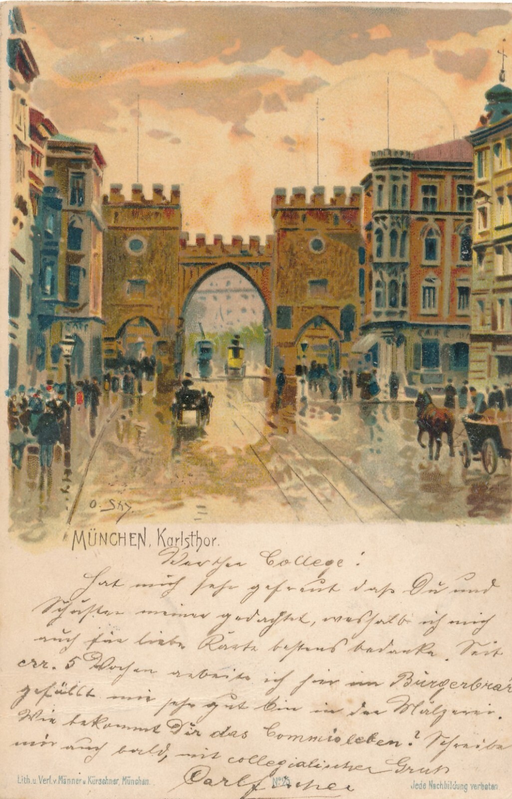 Litho - Karte gruss aus München Karlsthor Bayern Ansichtskarte (9341)