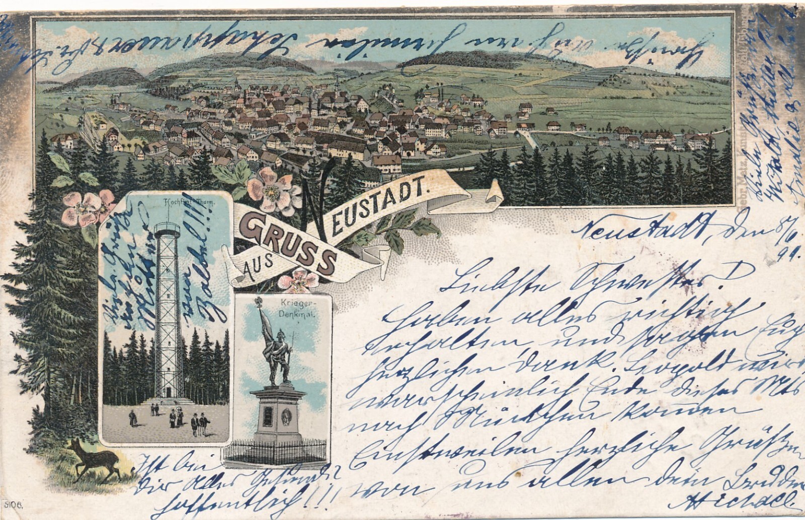 Litho - Karte gruss aus Neustadt Rheinland - Pfalz (7570)