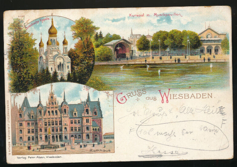 Litho-Karte gruss aus Wiesbaden Hessen (1614)