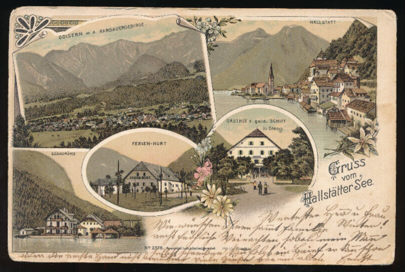 Litho - Karte gruss vom Hallstättersee Oberösterreich (6007)