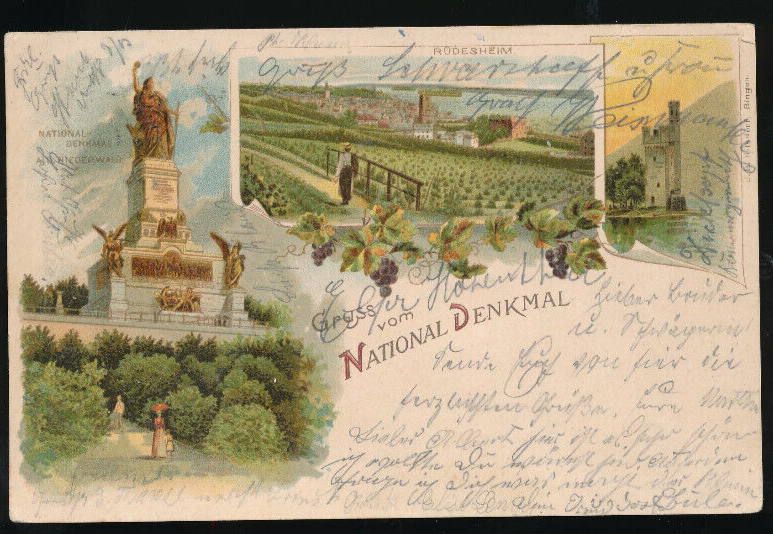 Litho-Karte gruss vom National - Denkmal in Rüdesheim Hessen (1613)