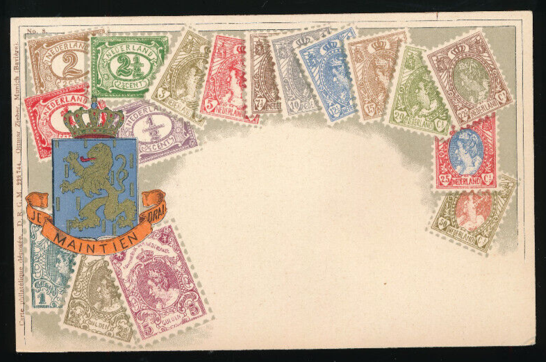 Litho-Karte Niederlande mit Wappen und Marken (2747)