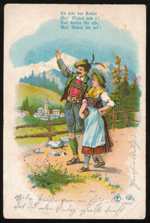 Litho-Karte von einem Trachtenpaar mit Spruch es Lebe der Kaiser (722)