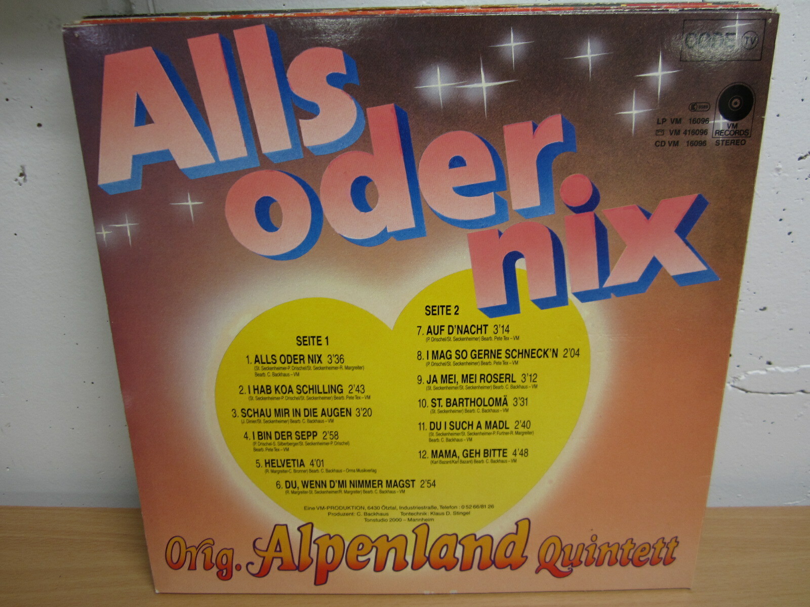 LP / Orig. Alpenland Quintett ?– Alls Oder Nix / VM REC. / AUSTRIA /