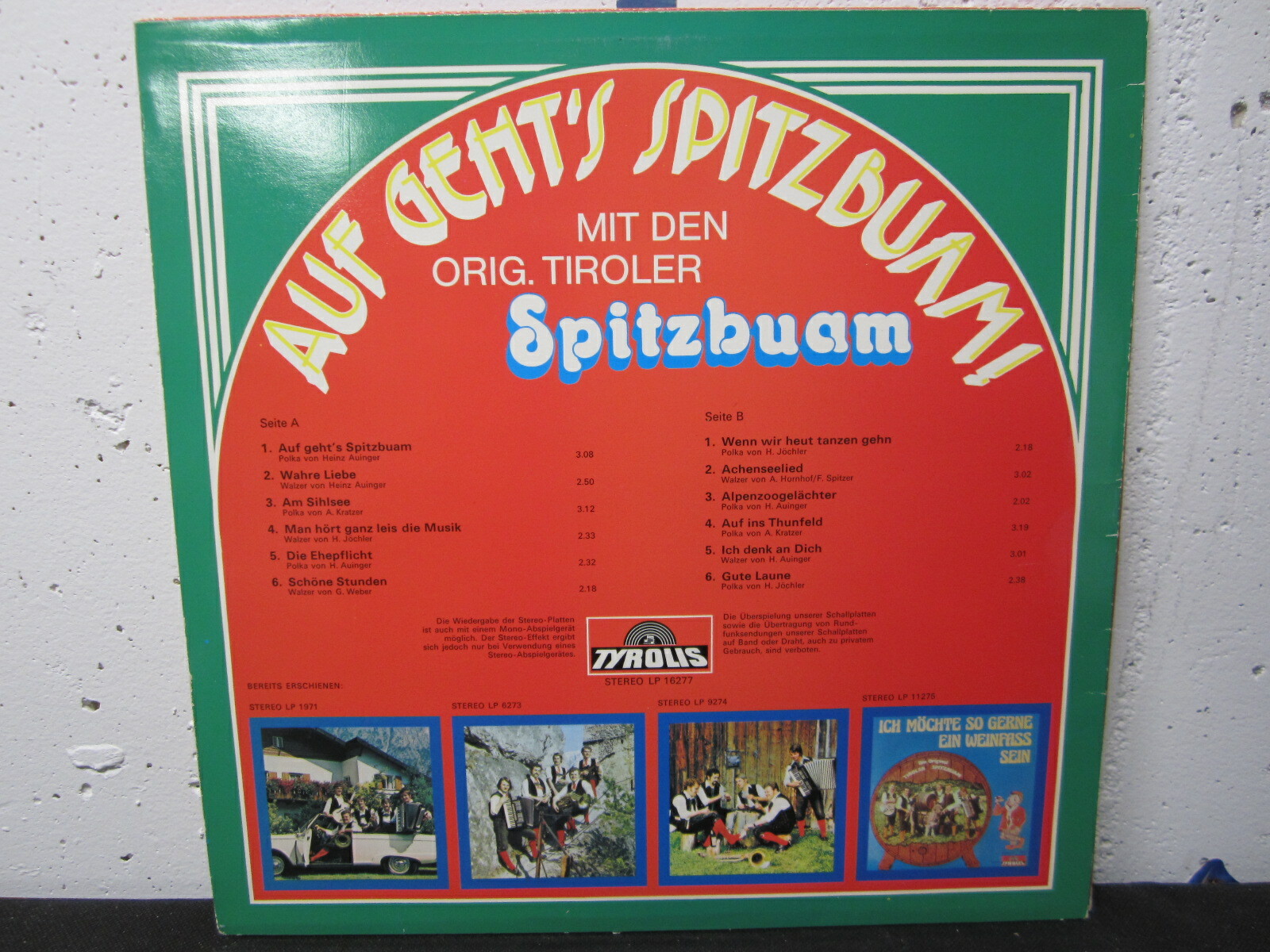 LP / Orig. Tiroler Spitzbuam – Auf Geht's Spitzbuam / Swiss Press / RAR /