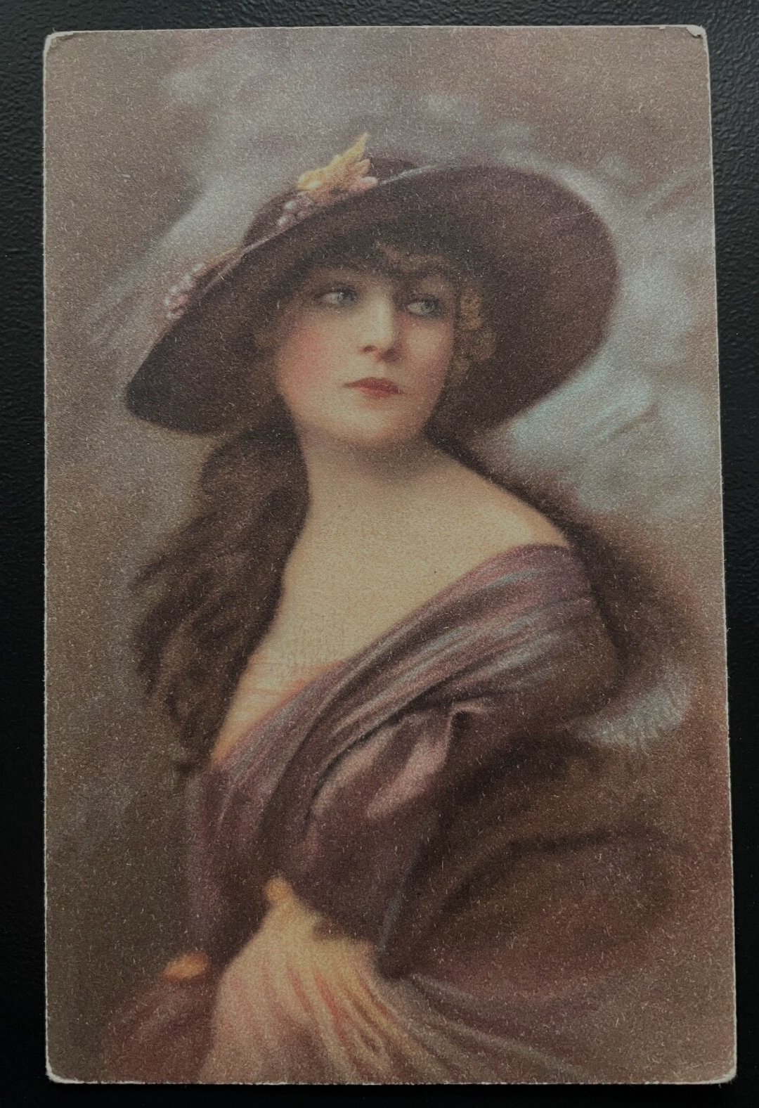 Malerei Frau Hut Kleid Schal Künstler Postkarte 600198A TH D
