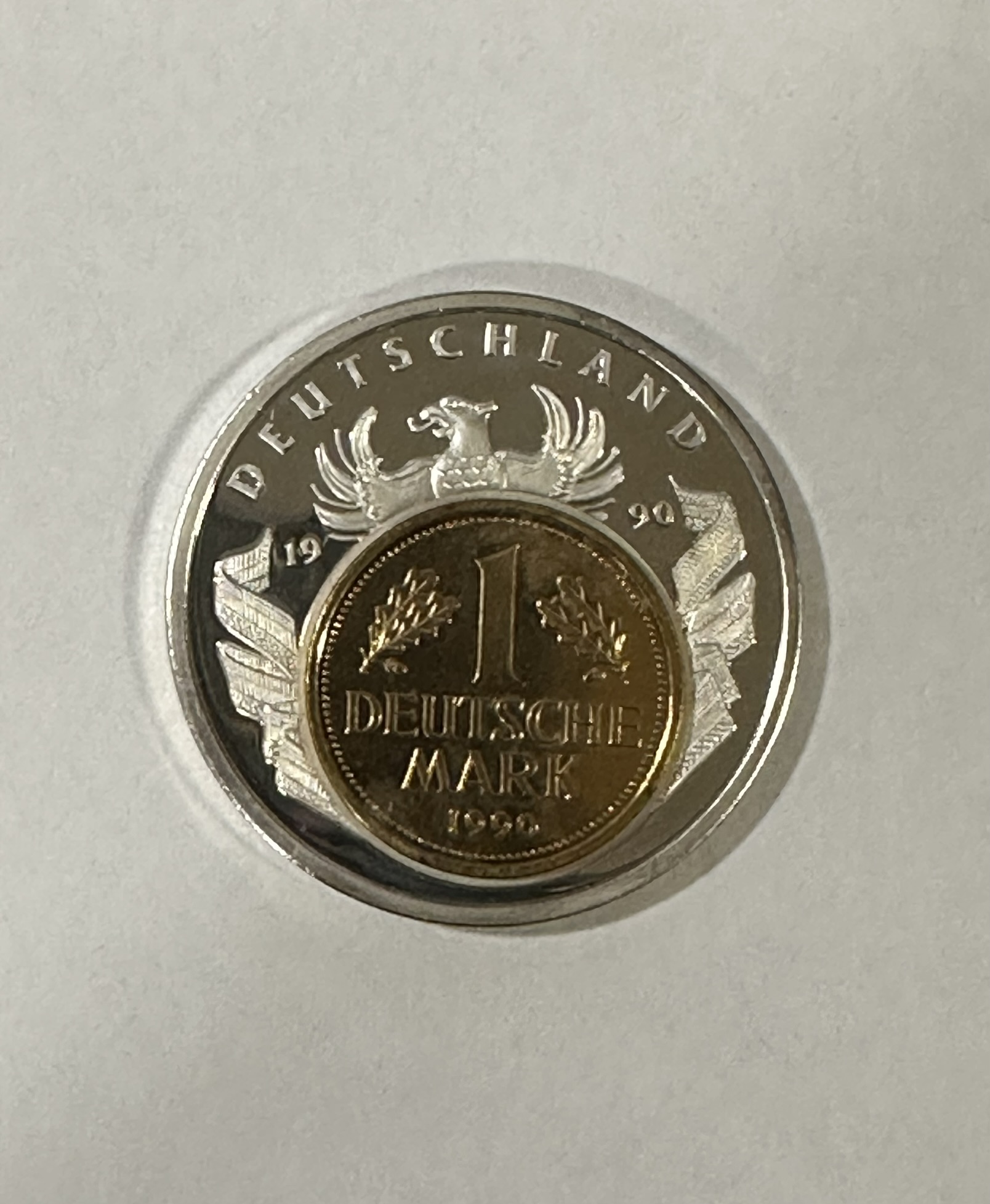 Medaille "European Currencies" mit vergoldeter 1DM Münze von 1990