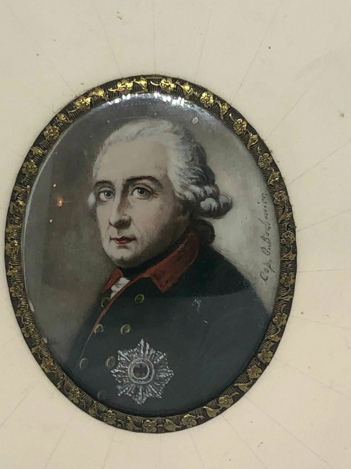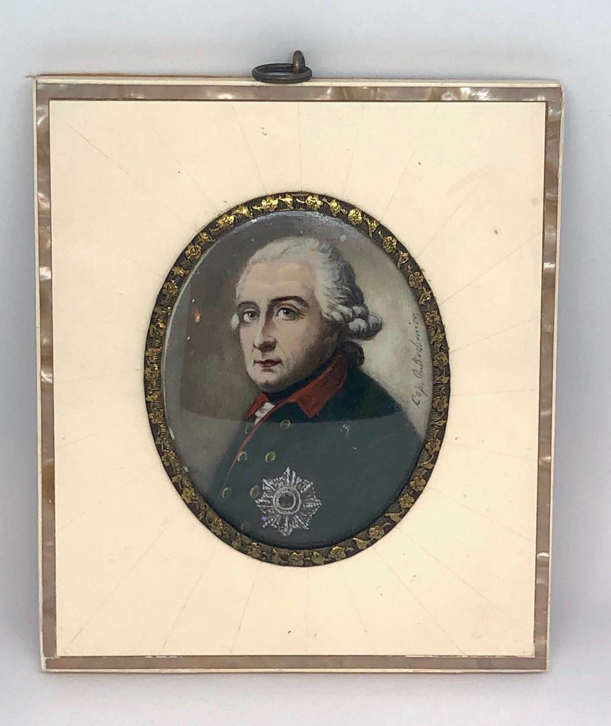 Miniaturmalerei sig. Alter Fritz Orden Abzeichen 14,5 x 12,5 cm 50018