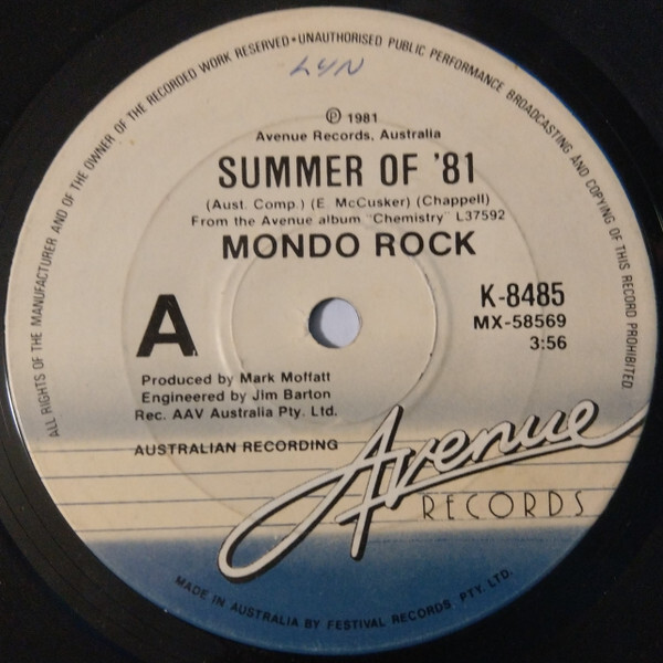 Mondo Rock - Summer Of '81 (7", Single)