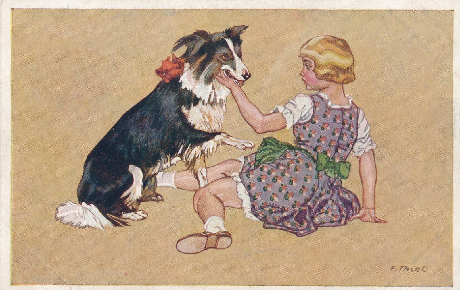 Motiv - Karte Hund und Mädchen Ansichtskarte (10372)