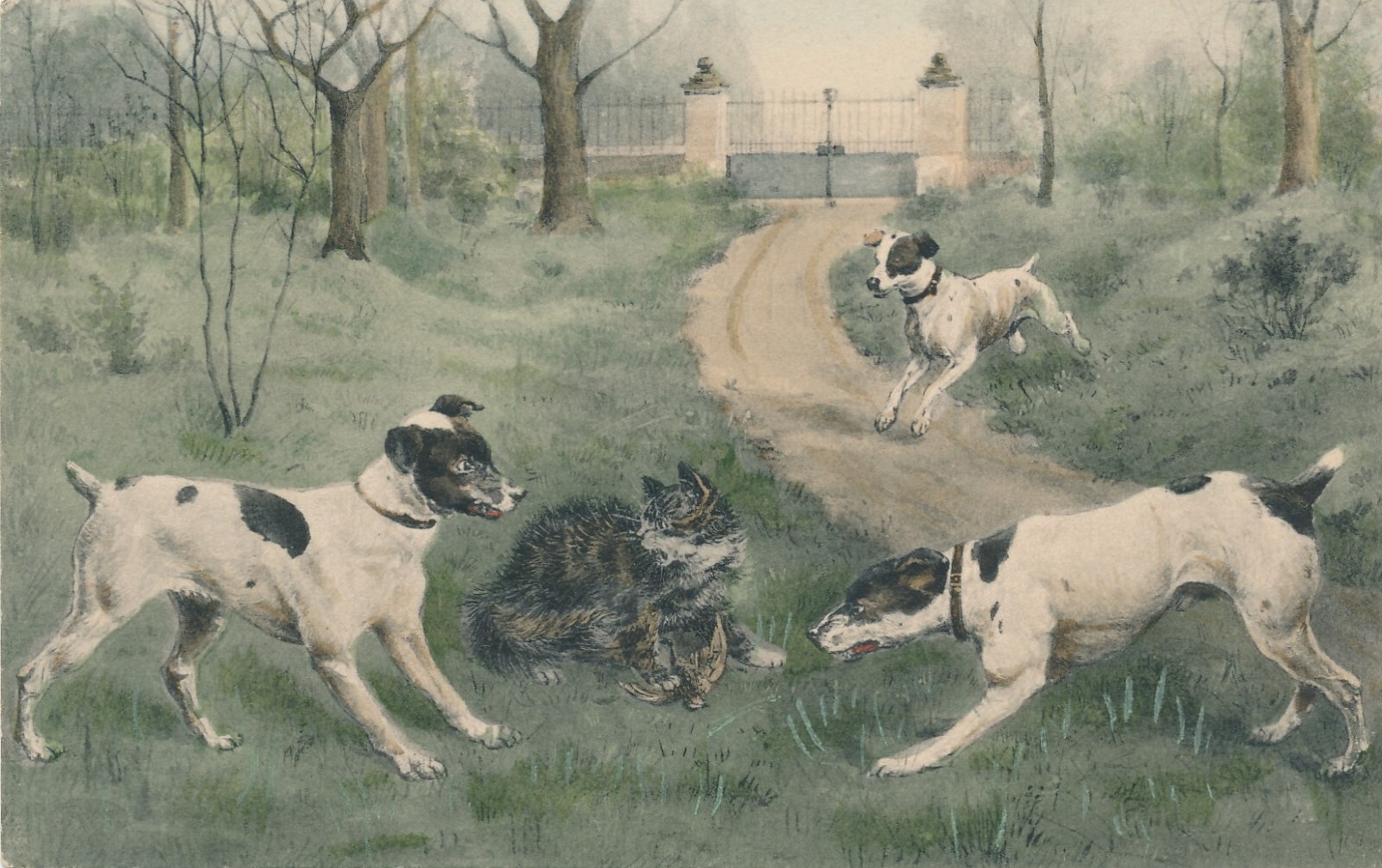 Motiv - Karte von drei Hunden mit Katze Ansichtskarte (10365)