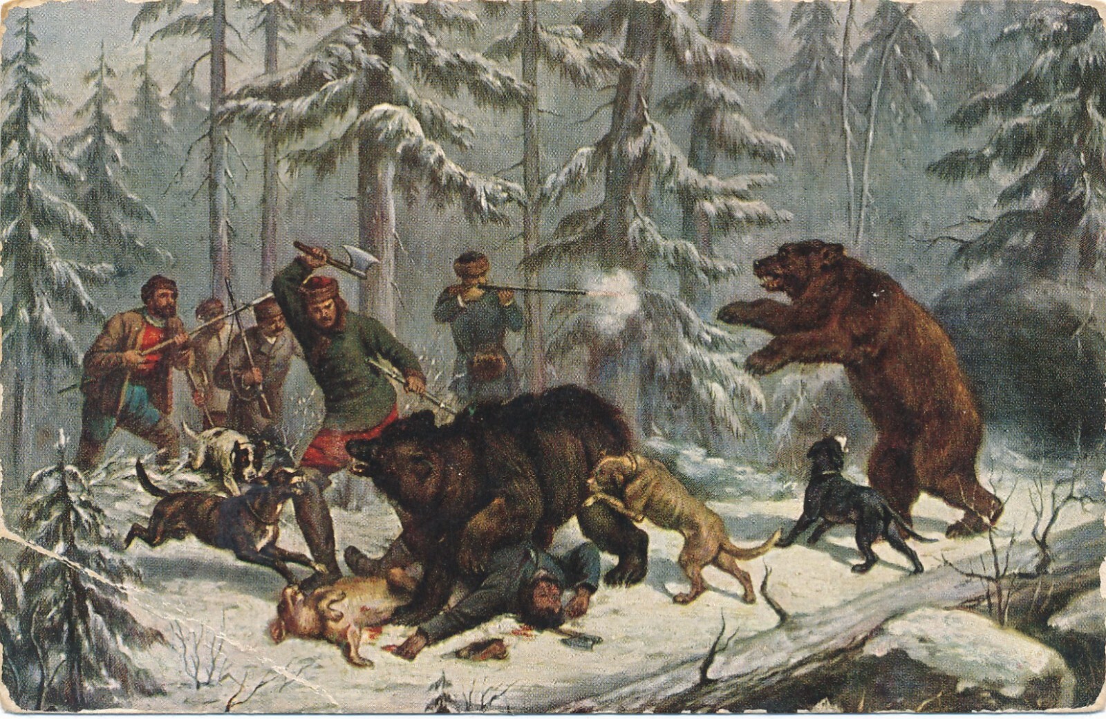 Motiv - Karte von einer Jagt mit Hunden und Bären Ansichtskarte (10045)