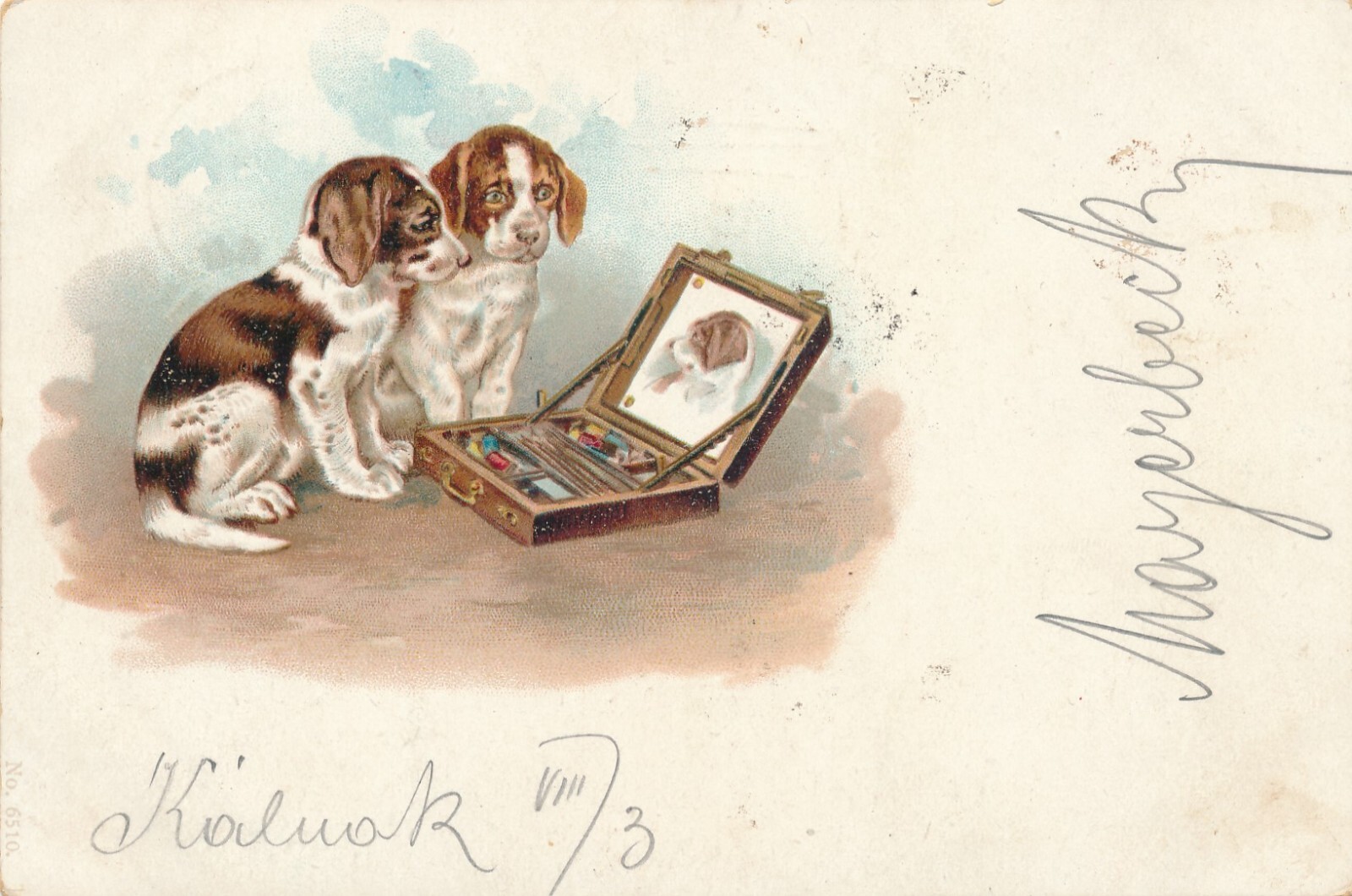 Motiv - Karte von zwei Hunden vor einem Spiegel Ansichtskarte (10355)