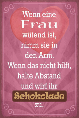 Nostalgie schild frau wut umarmen schokolade 12x18 / 20x30 / 30x40 blech od.holz
