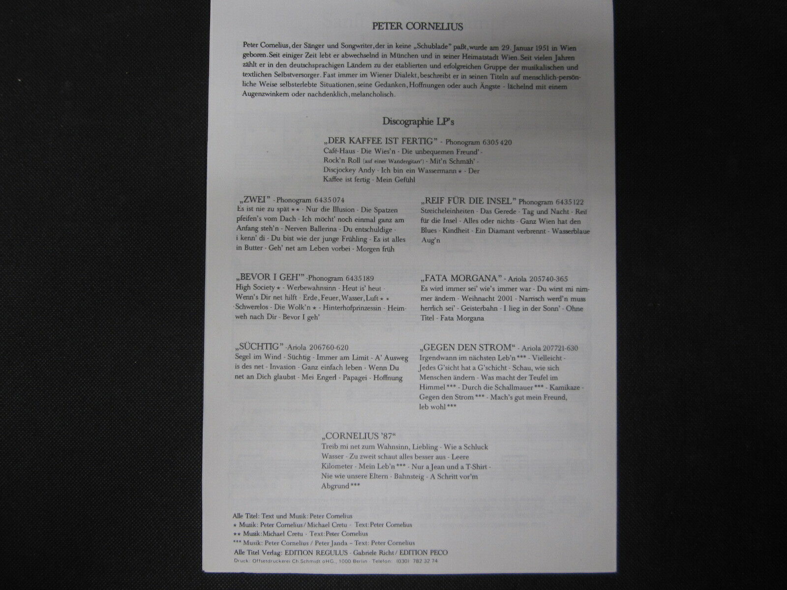 NOTENHEFT PETER CORNELIUS / Sanft ist unser Kampf / RAR /