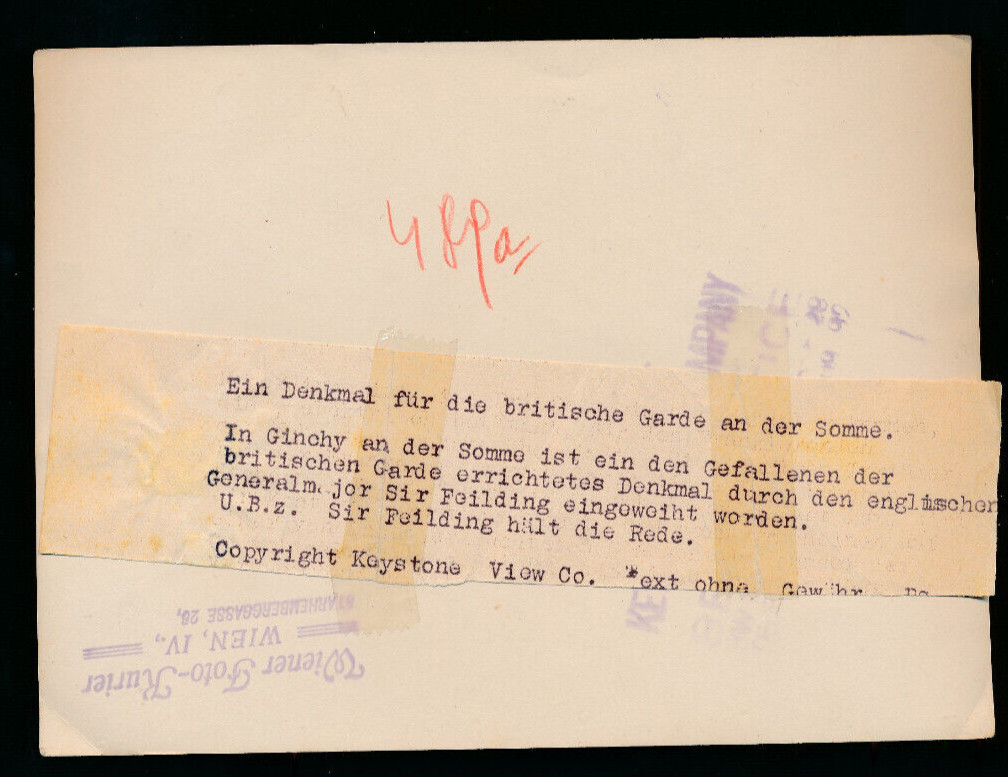 Orig. Pressefoto aus Ginchy Denkmal für gefallene Britische Garde (P1)