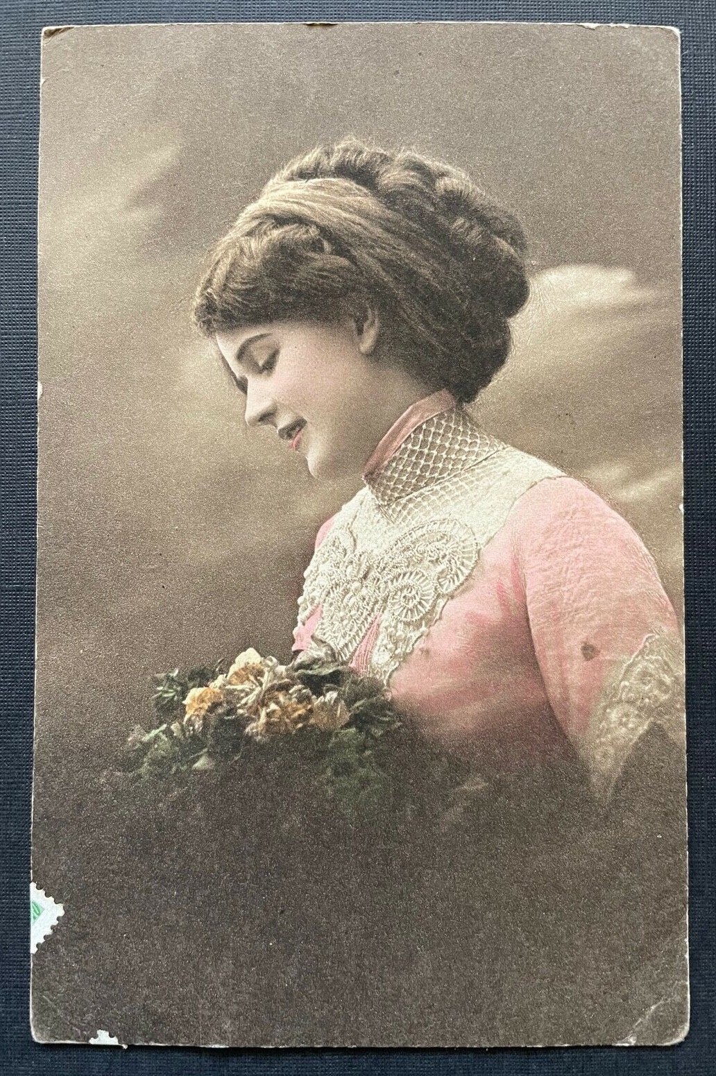 Porträt Frau Mädchen Kleid Tracht geflochtene Haare Zopf Blumenstrauß 400379 F