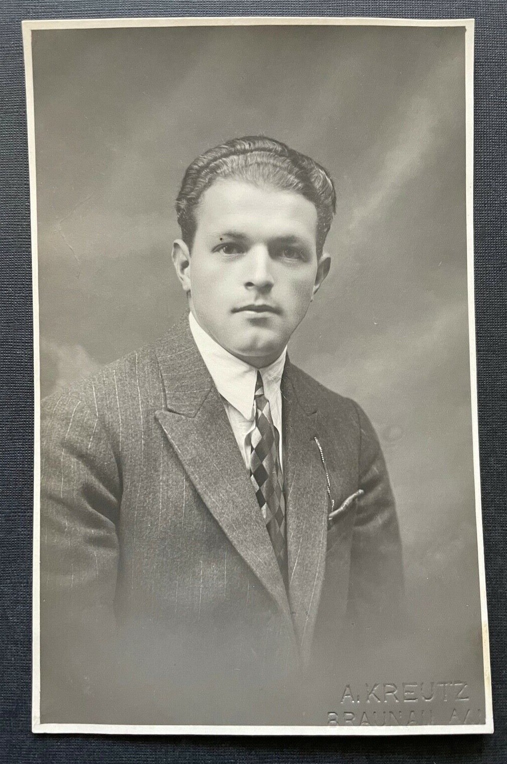 Porträt Mann Anzug Krawatte Zur Erinnerung 1925 A.Kreutz Braunau OÖ 400346 TH F