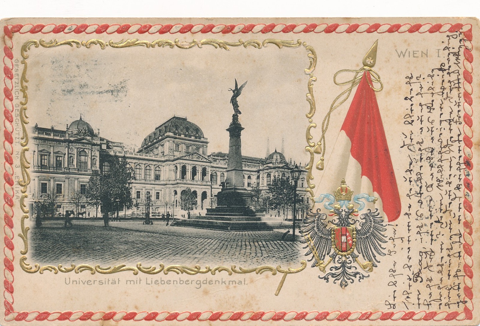 Präge - Karte aus Wien mit Universität und Liebenbergdenkmal (7537)