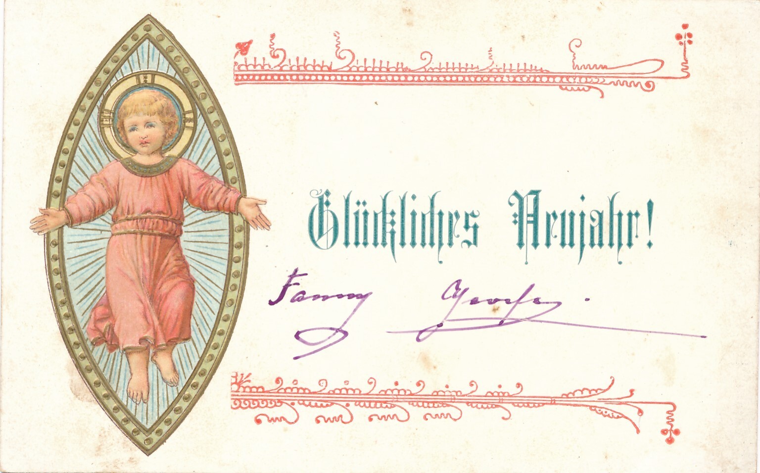 Präge-Karte, Glückliches Neujahr, Kind, Ansichtskarte (S3672)