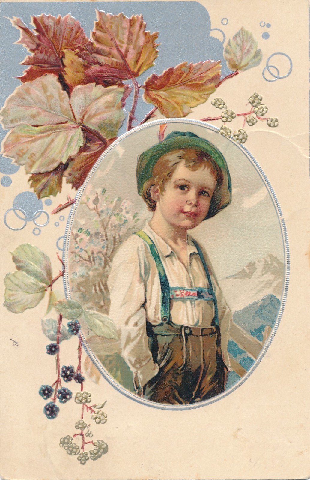 Präge-Karte, Kind in Tracht, Blumen, Ansichtskarte (S3689)