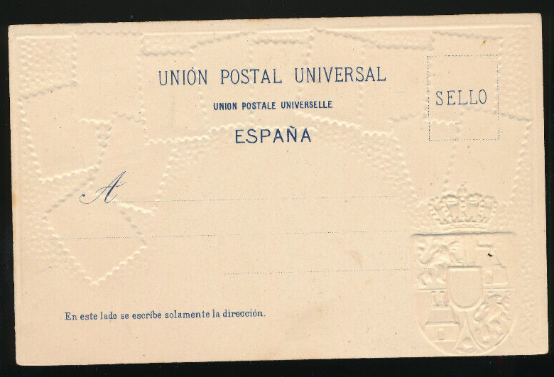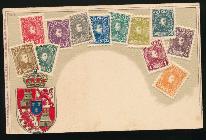 Präge-Litho-Karte Spanien mit Wappen und Marken (2750)