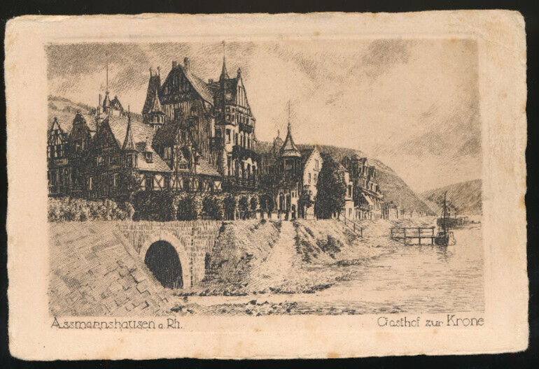 Radierungs-Karte aus Assmannshausen mit Gasthof zur Krone Hessen (1072)