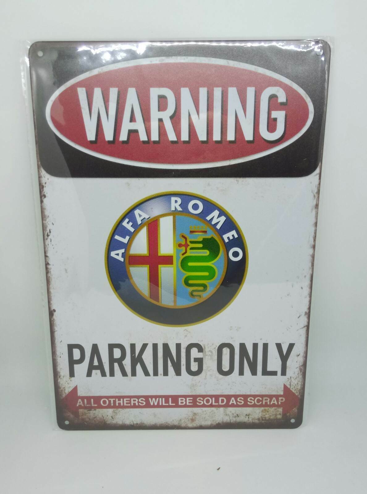 Retro Blechschild "Warning Alfa Romeo Parking Only" 30x20