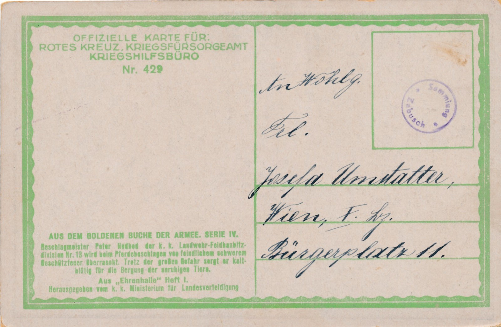 Rot Kreuz Karte Nr. 429 Pferdestall Ansichtskarte (15726)