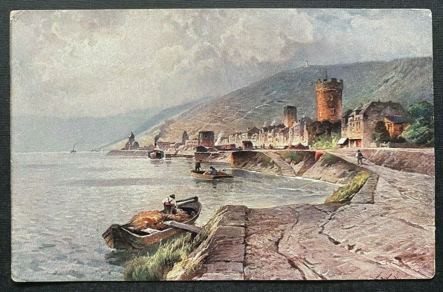 Rüdesheim Rhein Ufer Boot Turm Stadt Gebäude Berg Hessen Deutschland 410129 TH D