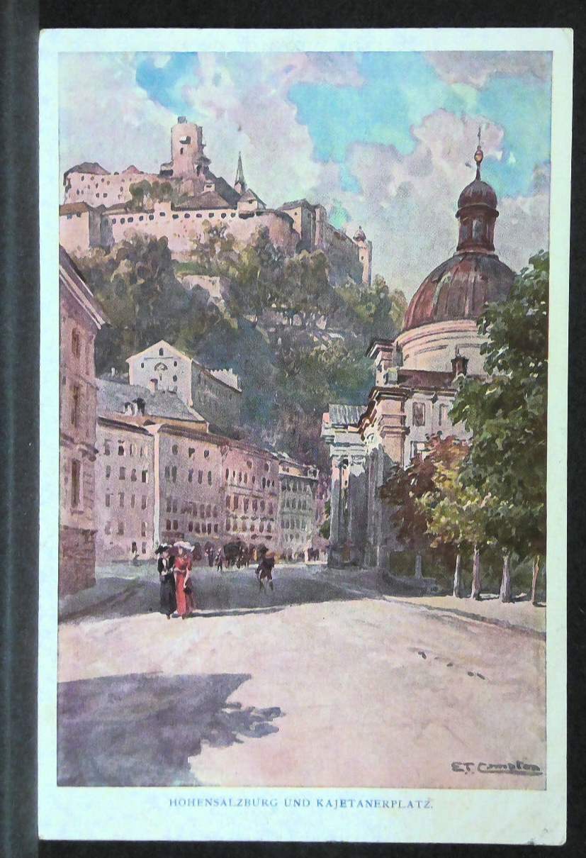 Salzburg Hohensalzburg und Kajetanerplatz Zeichnung Künstlerkarte JW165740